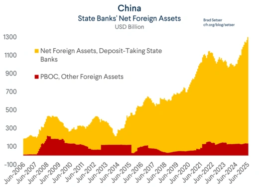 Chinese state banks have been consistently accumulating foreign assets. The direction of pressure on China’s currency has changed; without backdoor intervention, it would now be getting stronger.